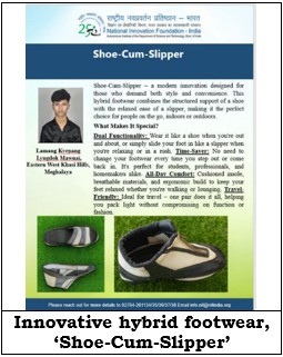 Mr. Lamangkyrpang Lyngdoh Mawnai, a student of B.Des- (Batch: 2024-2028) of the School of Footwear Design and Production (FDP) of FDDI, Kolkata Campus was recognized by the National Innovation Foundation- India for his innovative hybrid footwear, ‘Shoe-Cum-Slipper’.