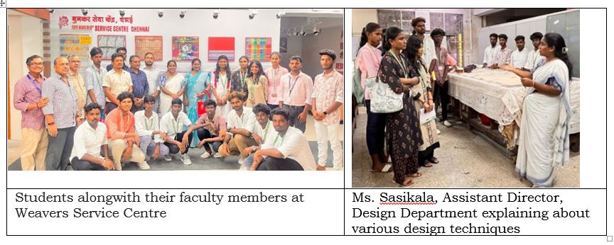 Ms. Sasikala, Assistant Director, Design Department addressed the students and briefed them about the rich heritage of Indian textiles.