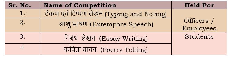 In order to promote the knowledge and skills in use of official language – Hindi among the faculty, staff and the students in consonance with the policy of Government of India, four competitions were organized during the ‘Hindi Pakhwara’.