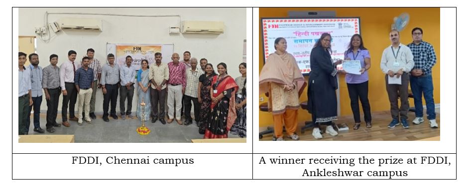 Additionally, as per the directives of the Official Language Department, FDDI implemented the FDDI Official Language Promotion Scheme, under which academic and non-academic departments were inspected for their outstanding work in Hindi throughout the year and awarded with cash prizes and certificates.