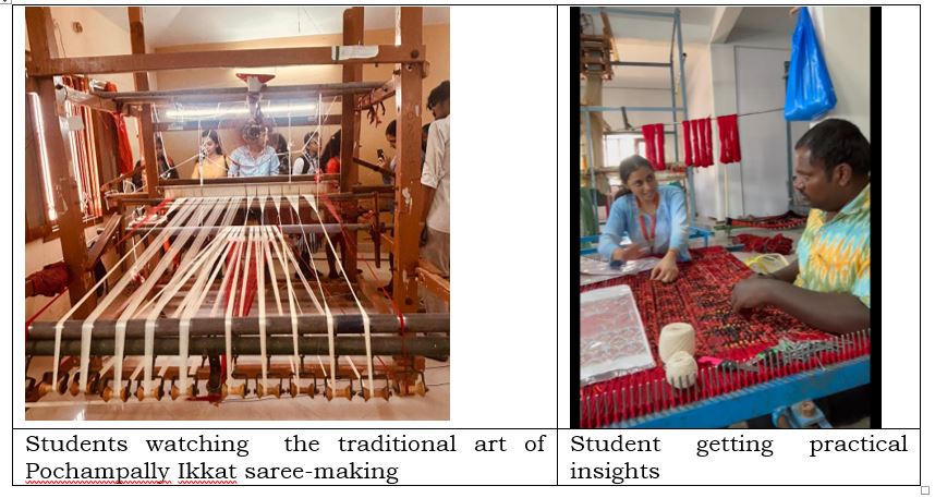 The purpose of this educational excursion was to provide the students an opportunity to see and acquire the skill of the traditional art of Pochampally Ikkat saree-making.
