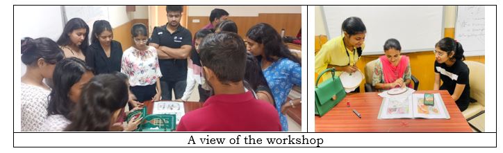 Dr. Sangeeta Tomar having 6 years of experience in traditional and creative hand embroidery was the resource person who provided tips and tricks to the students to transform a plain piece of cloth into a beautiful work of art with the technique of embroidery.