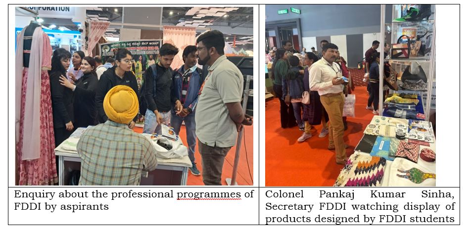 Visitors were thrilled to see the creativity and craftsmanship behind the products, with many expressing amazements at the designs. The showcase attracted significant footfall to the stall, sparking curiosity and excitement among the crowd to learn more about FDDI’s academic programs, workshops, and career opportunities.