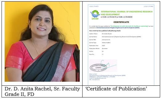A technical article co-authored by Dr. D. Anita Rachel, Sr. Faculty Grade – II, School of Fashion Design (FD) of FDDI, Chennai campus has been published in the International Journal of Engineering Research and Development (IJERD).