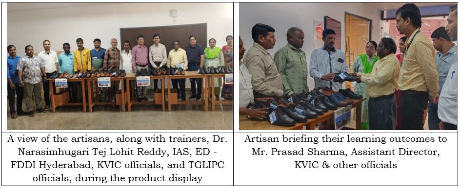 During the event, the artisans shared their transformative experiences with their trainers, programme organizers, Dr. Narasimhugari Tej Lohit Reddy, IAS, Executive Director (ED) – FDDI, Hyderabad campus, KVIC and Telangana State Leather Industries Promotion Corporation Ltd. (TSLIPC) officials.