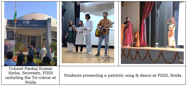 Colonel Pankaj Kumar Sinha, Secretary, FDDI unfurled the Tri-colour at FDDI, Noida campus in the presence of Ms. Manju Maan, Executive Director (ED), FDDI – Noida campus and the staff & their family members and students of FDDI.