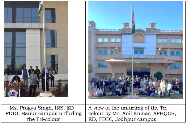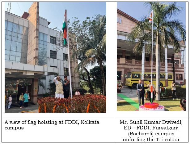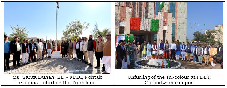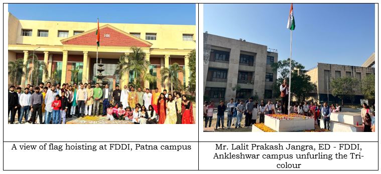 The 76th Republic Day was celebrated with patriotic fervour and enthusiasm at all the campuses of FDDI on 26th January 2025 by unfurling the ‘National Flag’ followed by the ‘National Anthem’.