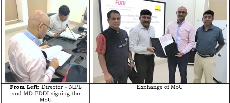 On 02nd July 2024, a Memorandum of Understanding (MoU) was signed between FDDI’s Center of Excellence (CoE) and M/s. Natroyal Industries Pvt. Ltd. (NIPL).