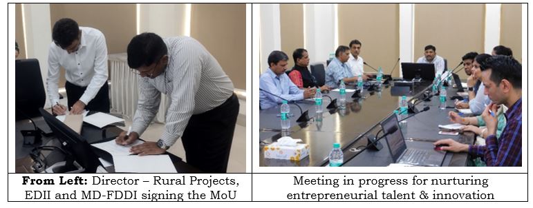 On behalf of FDDI, Colonel Pankaj Kumar Sinha, Managing Director (MD) signed the MoU, whereas, on behalf of EDII, Dr. Rajesh Gupta, Director – Rural Projects signed the MoU.