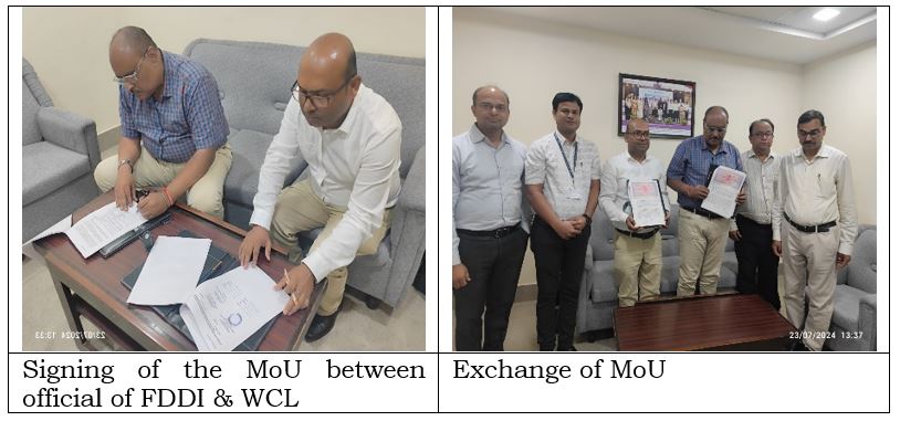 On 25th June, 2024, FDDI, Chhindwara campus and Western Coalfields Ltd. (WCL) have entered into a Memorandum of Understanding (MoU) to offer short-term training programs for the fiscal year 2024-25.