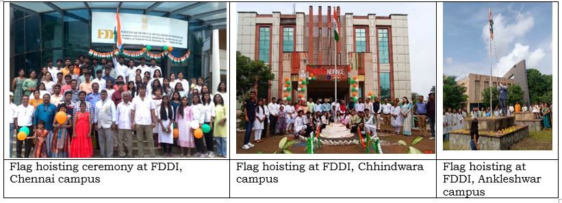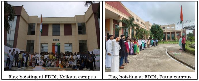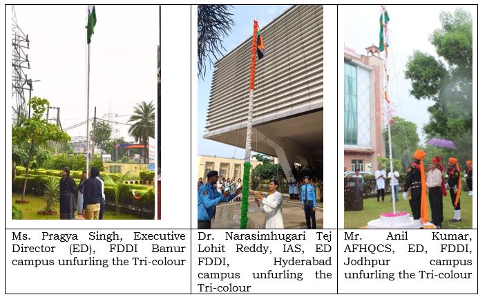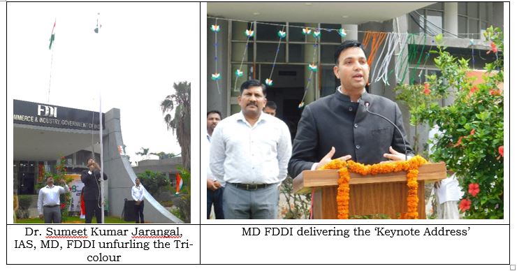 Dr. Sumeet Kumar Jarangal, IAS – Managing Director (MD), FDDI unfurled the Tri-colour at FDDI, Noida campus in the presence of Colonel Pankaj Kumar Sinha, Secretary, FDDI and the staff & their family members and students of FDDI.