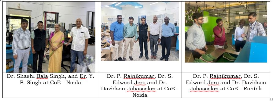For technical interaction and collaboration in footwear research, Dr. P. Rajnikumar, Associate Professor, Center of Excellence (CoE) in Biomechanics cum High Performance Center for Sports at Tamil Nadu Physical Education and Sports University, Chennai and Dr. S. Edward Jero, Assistant Director, Center for Human Movement Analytics and Dr. Davidson Jebaseelan, Member Secretary of the Center for Human Movement Analytics and Professor, School of Mech. Engineer, Vellore Institute of Technology Chennai, visited the CoE-Noida campus on 29th August 2024 and CoE-Rohatk campus on 29th August 2024.