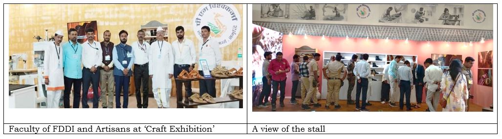 Faculty from School of Footwear Design and Production of FDDI namely, Mr. Prashant Kumar Saxena, Dr. Pankaj Dubey and Mr. Shriganesh Chaure participated at the ‘Craft Exhibition’ and displayed a modern setup of advance machineries of virtual 3D Modeling lab. The theme of stall represented a journey from traditional footwear making to the advance modern technology.