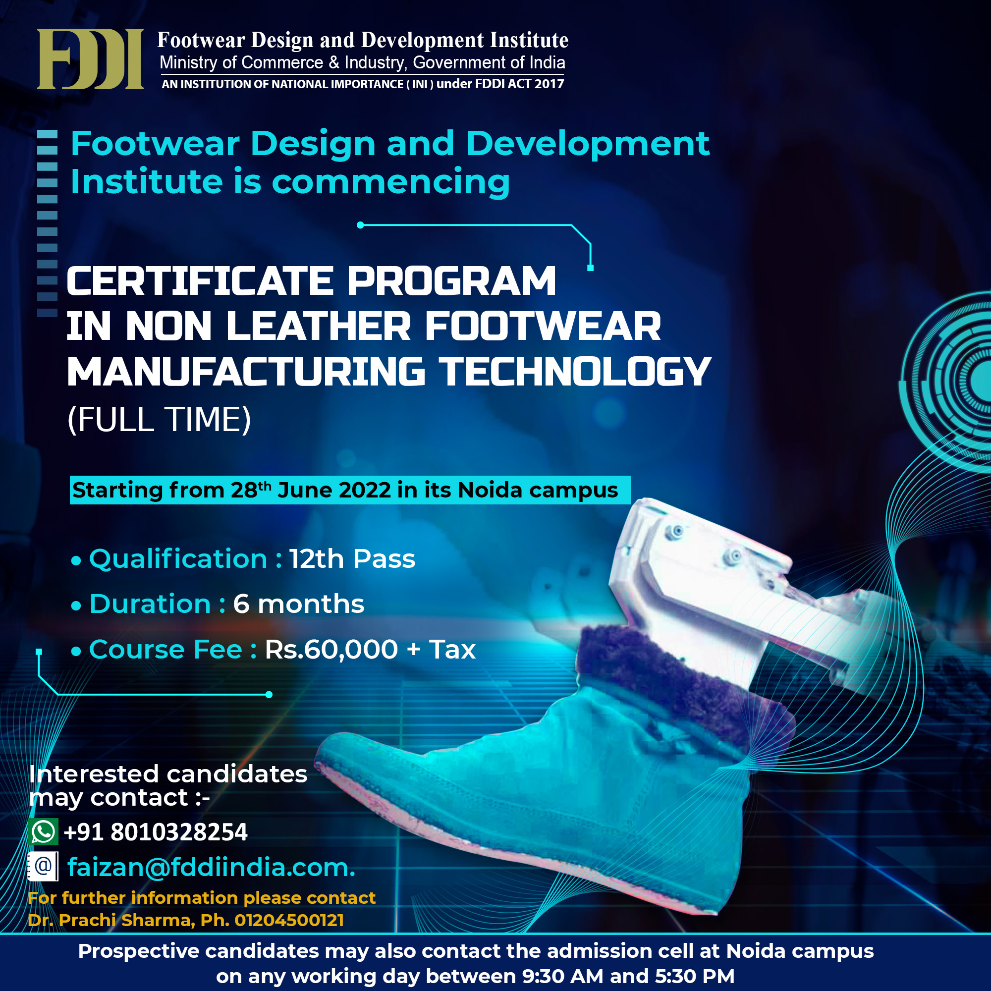 Short Term Certificate Programmes on Non-Leather Footwear Manufacturing Technology: (FDDI Campuses: Banur, Rohtak, Kolkata, Noida & Chennai)